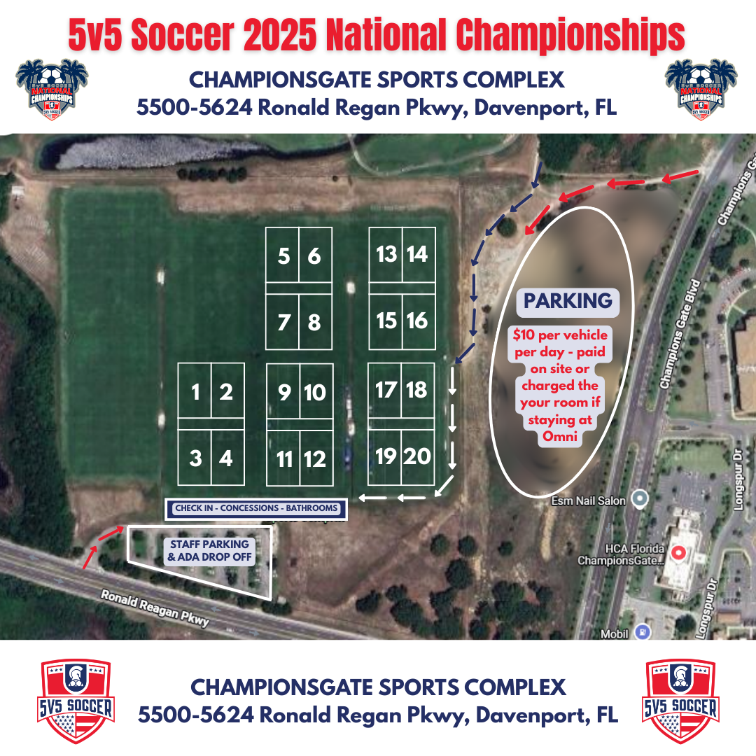 Welcome to the largest ever 5v5 Soccer National Championships! Tomorrow we honor and celebrate the 170 teams traveling from 25 states to come compete to be the 5v5 Soccer National Champions with our annual Parade of Teams from 9am-10am.